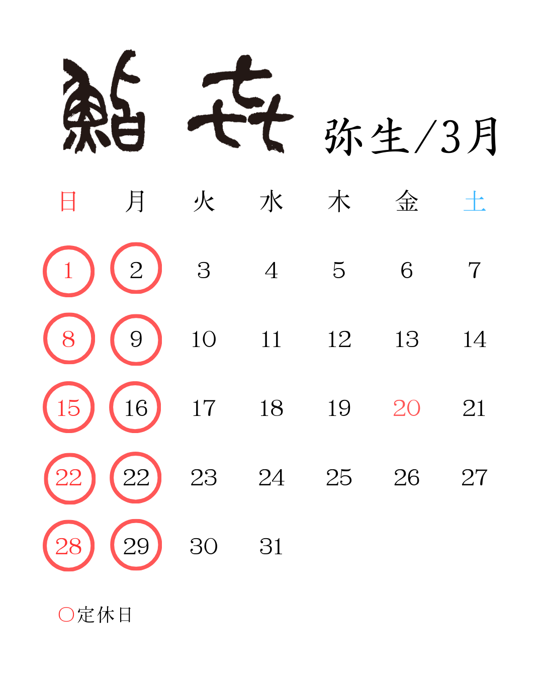 3月の営業日
