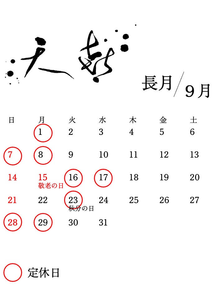 9月の営業日