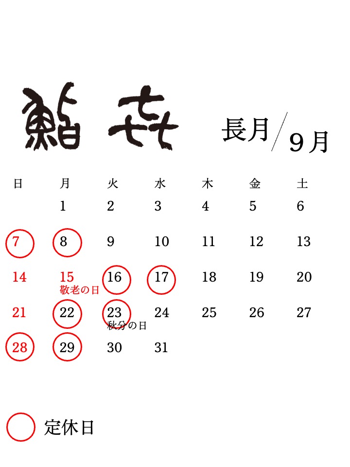 9月の営業日
